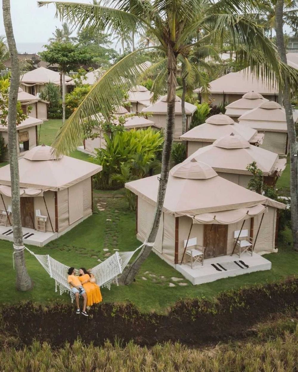 Sandat Glamping Tents, Ubud, Bali: Menawarkan pengalaman glamping mewah di tengah sawah yang hijau, Sandat Glamping Tents menawarkan tenda-tenda bergaya safari yang dilengkapi dengan kolam renang pribadi dan fasilitas spa. Pengunjung dapat menikmati ketenangan alam Bali dan merasakan pengalaman relaksasi yang mendalam.
