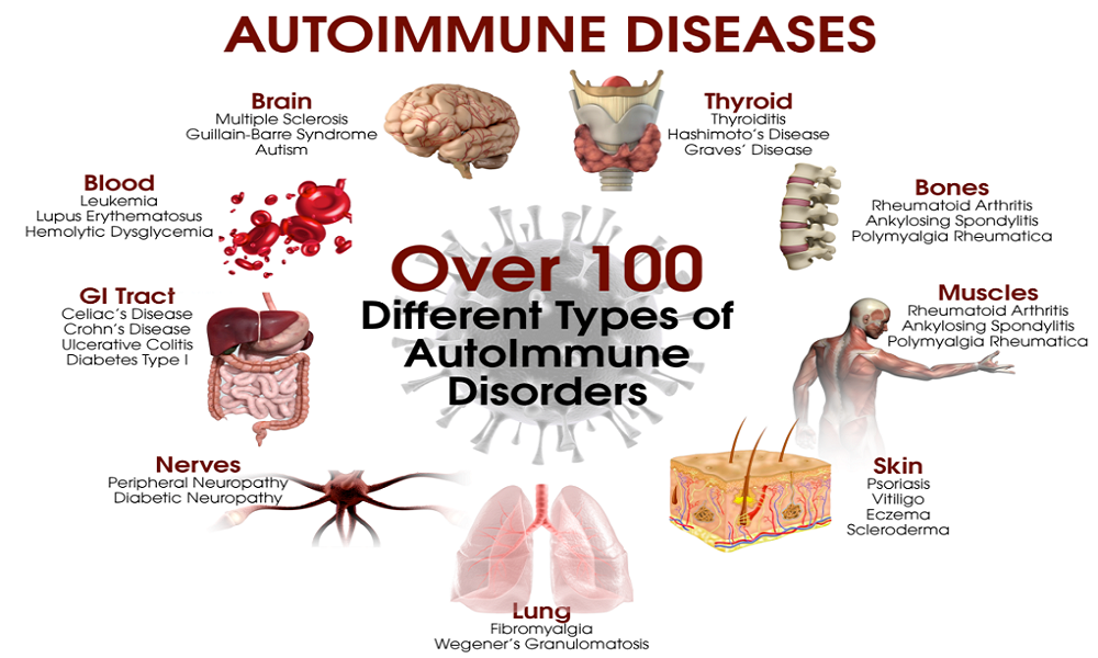Serangan autoimun ini dapat menyebabkan peradangan kronis, kerusakan jaringan, dan berbagai gejala yang memengaruhi berbagai bagian tubuh. Penyakit autoimun dapat menyerang hampir semua organ atau sistem tubuh, termasuk sendi, kulit, otot, kelenjar endokrin, sistem saraf, dan organ vital lainnya.