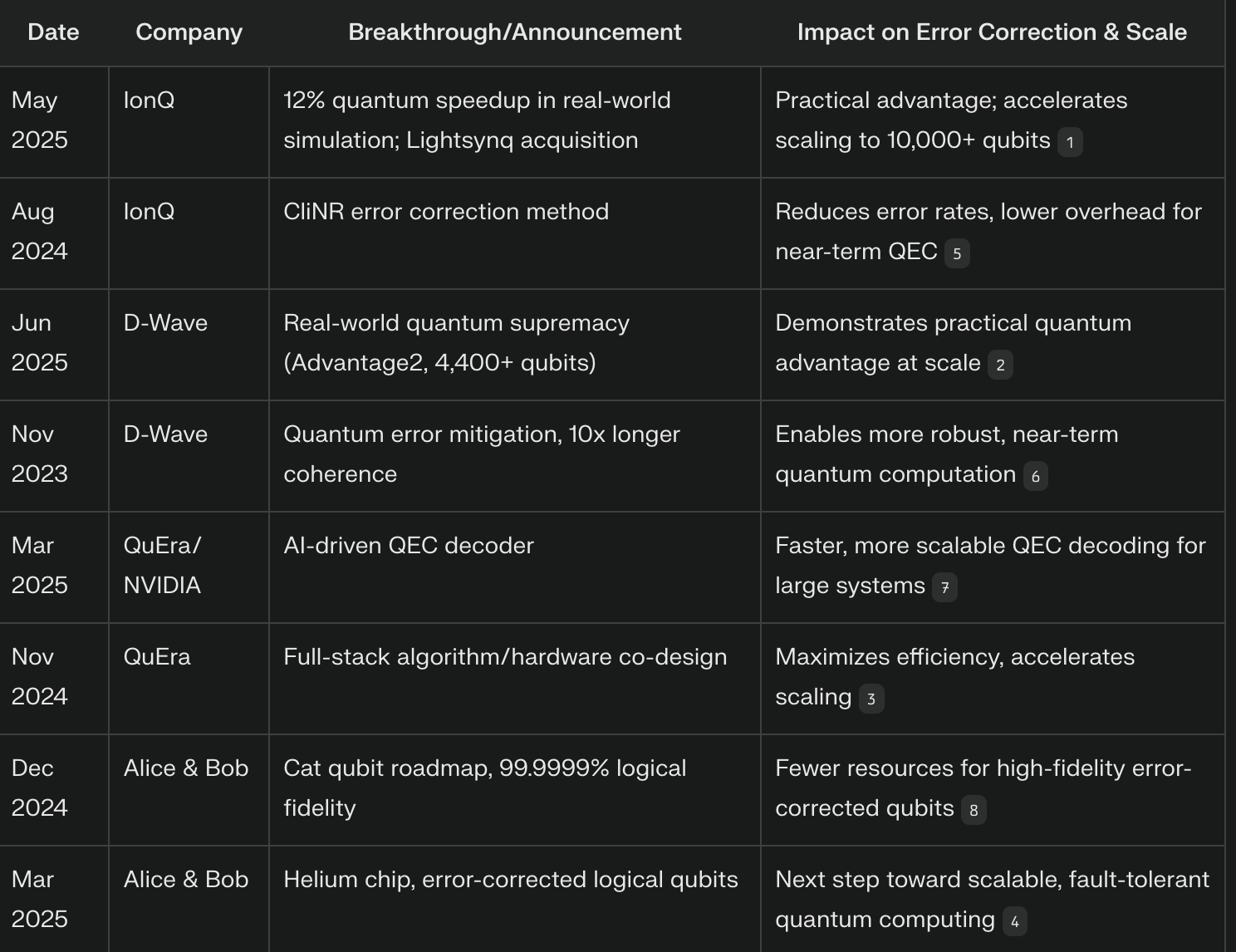 • Kecepatan dan Akurasi: QEC harus dilakukan dengan cepat dan akurat untuk mencegah kesalahan menyebar. Pengukuran sindrom dan operasi korektif harus dilakukan dengan kecepatan tinggi dan dengan tingkat kesalahan yang sangat rendah.